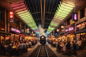 理事長総評:ネオンとそれを囲む賑やかなお店。AIを使いつつ、中央に汽車を通す様子アイデアが非常にユニークでLRTを柳ヶ瀬の横を通すという計画もある中で非常に面白い観点と思いノミネートさせて頂きました。